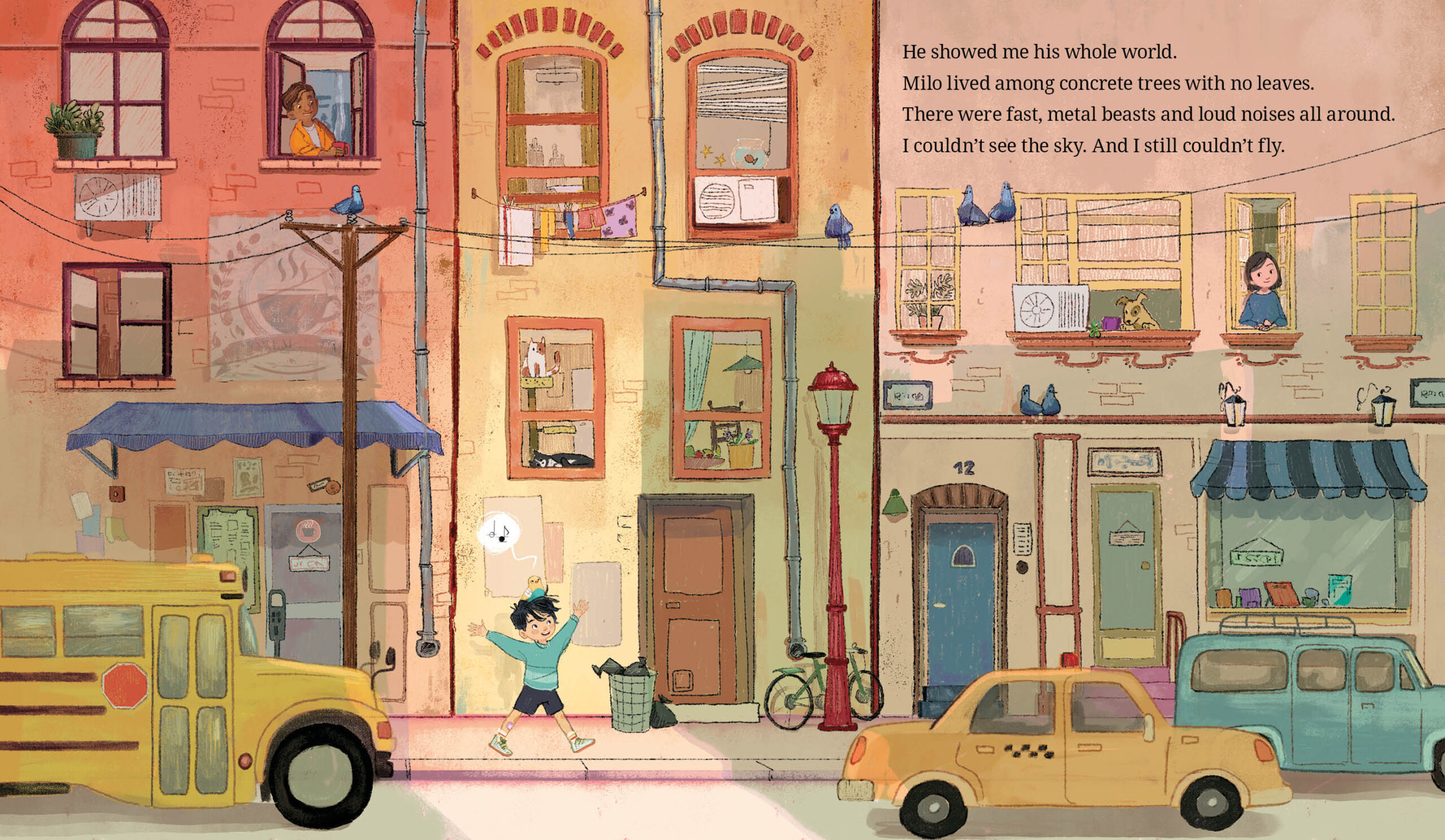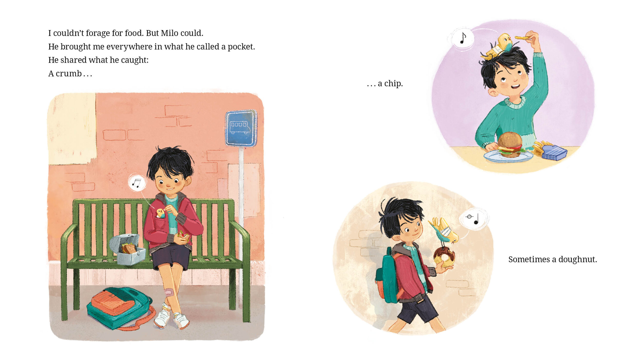 The day Twig falls out of his nest, he meets a boy called Milo. Milo cares for Twig, building him a new nest in his home, tending to his broken wing and introducing him to his flock. Twig sings his appreciation to Milo as his wing heals, and they become the best of friends. But Twig is still a bird and soaring with Milo on his bike just isn’t the same as spreading his wings in the air. He stops singing, leaving Milo with a hard decision about the last thing his best friend needs to heal.