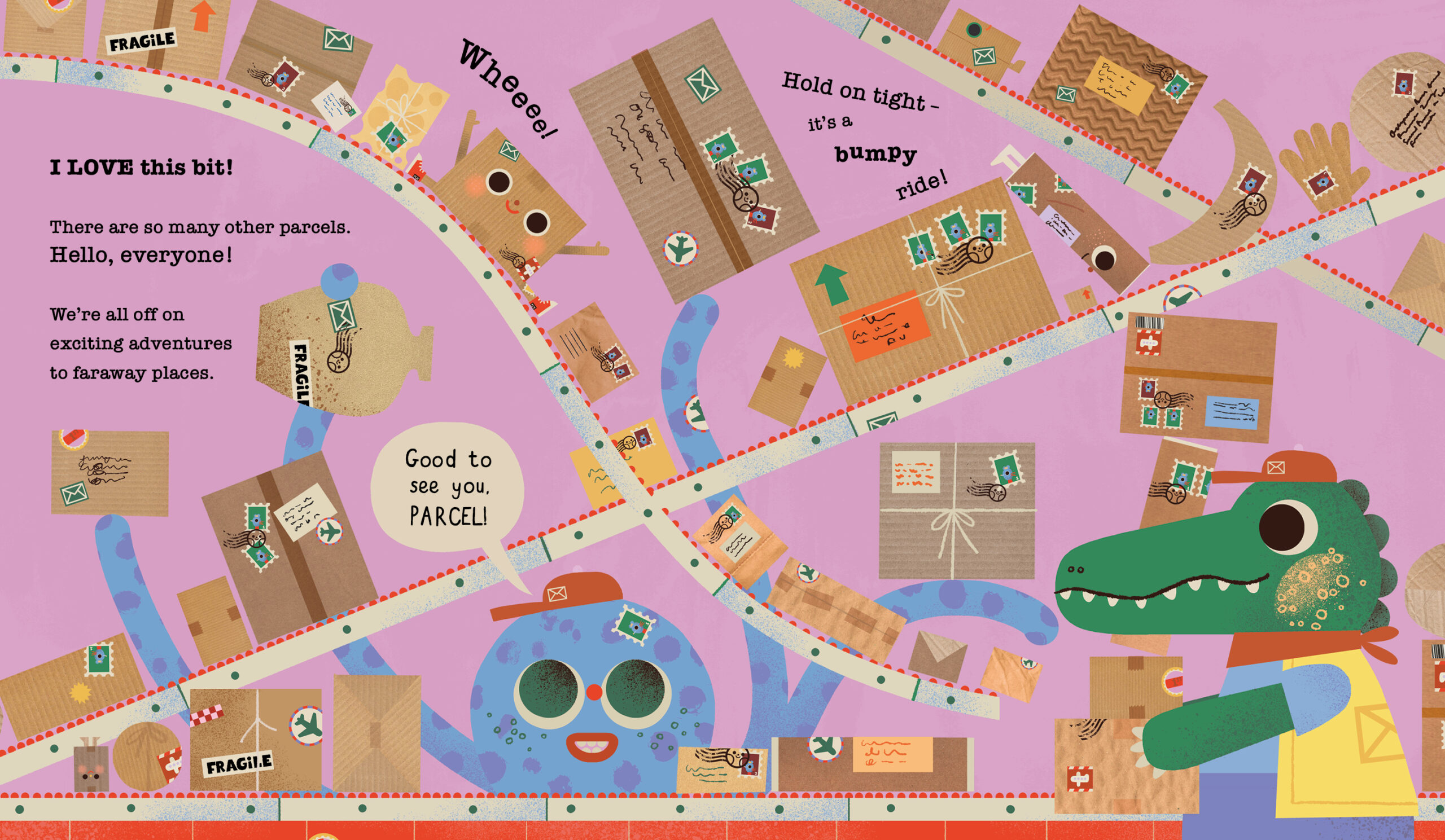 Follow Parcel as he gets passed all around the world, finding joy in the most unexpected places and celebrating all the fun you can have with a cardboard box. Bursting with energy, imagination and delightfully whacky detours, this hilarious picture book takes readers on a rollicking, first-class adventure by sea, sky and snail mail. Children will love joining Parcel on this interactive journey to discover where he really belongs, ending with a fold-out reveal that’s sure to surprise.